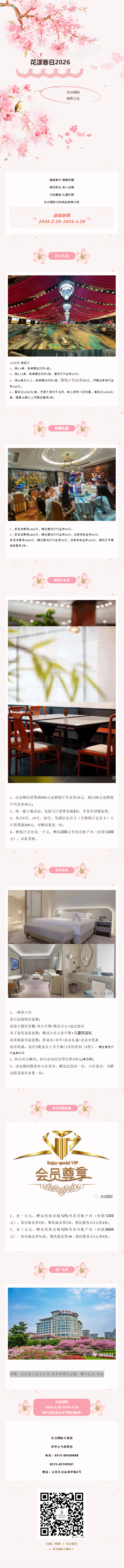地址:江苏省东台市金海中路2号 邮编:224220 酒店总机:0515-89566666 餐饮预订:0515-89566666