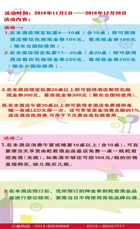 地址:江苏省东台市金海中路2号 邮编:224220 酒店总机:0515-89566666 餐饮预订:0515-89566666